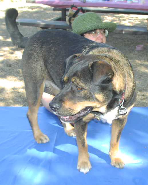 You can see photos in a couple of places of our former foster pit bull, Max. He is a very sweet dog and has now been adopted by....a day care center! He lived with us for four months in 2000.