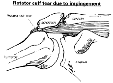 Alternatively the space itself can be narrowed, usually where the acromion itself is large and prominent (primary impingement with secondary tendinitis). A large acromion can occur as part of normal growth, or later in life spurs can develop along the front of the bone and can stick in the tendon. If this is bad enough, these spurs can actually dig into the tendon to such an extent that the tendon becomes eroded away and ruptures.