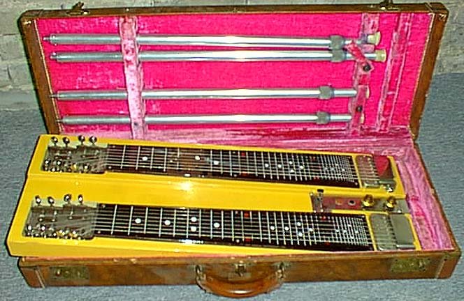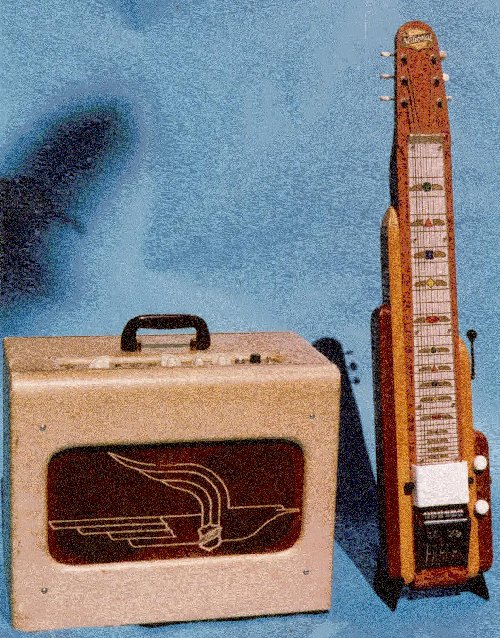 Steel Guitar Links. Much of the information provided in this page is paraphrased from Gruhn's Guide to Vintage Guitars by George Gruhn and Walter Carter, ISBN 0-87930-195-3. Published by the publishers of Guitar Player magazine, it's a essential resource if you want to find out anything about good American guitars. If you want to find out more about your specific steel guitar (such as the date it was manufactured, or specifics about the model you own), you ought to buy this book. The suggested list price is $27.95 in the USA. It is available from any good music store or from Gruhn Guitars. Eric Shoaf has graciously provided me with additional information based on his many years collecting steel guitars. His comments follow the discussion of each manufacturer. Clay Harrel has a wonderful web site with much more information, not only about lap steels, but all kinds of musical instruments. Many of the Gibson lap steels shown on this page are from his collection. I have information on Alamo, Alkire, Bigsby, Carvin, Danelectro, Dickerson, Dobro/Regal, Fender, Framus, Epiphone, Gibson, Gretsch, Guyatone, Harmony, Magnatone, National/Valco/Supro, Norman English, Rickenbacker, Teisco del Rey and Vega. AlamoAlamo was founded by Charles Eilenberg as Southern Music of San Antonio, Texas around 1947. Alamo made many different guitars and amplifiers. Models included: