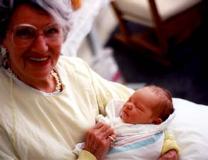 Grandson Andrew Heumann is born, shown here meeting his G.G. Zelda for the first time.