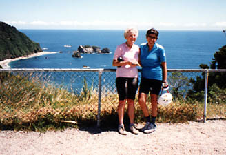 Midge and true friend Jean Green bicycle through New Zealand